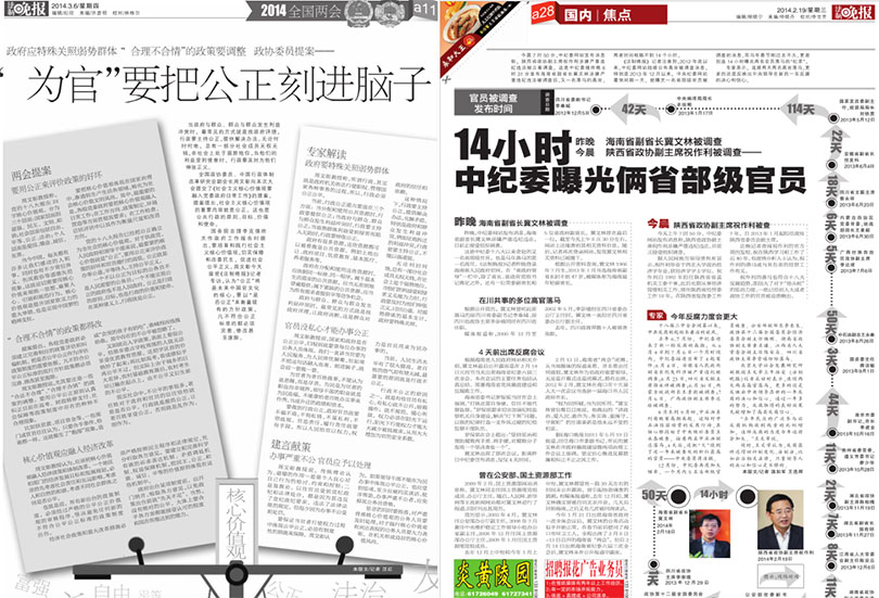 办一张“离你近的报纸”是《法制晚报》的办报理念,努力创新,在做足特色上下功夫;在形式上力求创新,不定期地推出各种专题报道,关注各类焦点、热点问题;黄金周期间,还会在节假日版量的基础上,推出每天8个版的“黄金周饕餮”专刊,以解您长假阅读之渴。